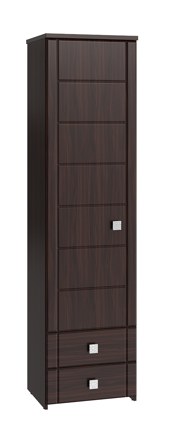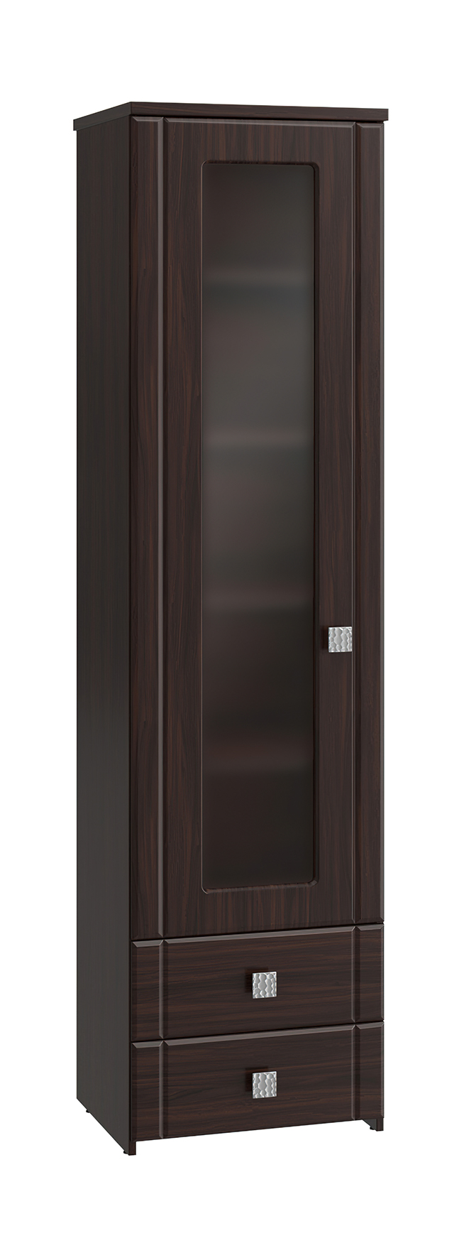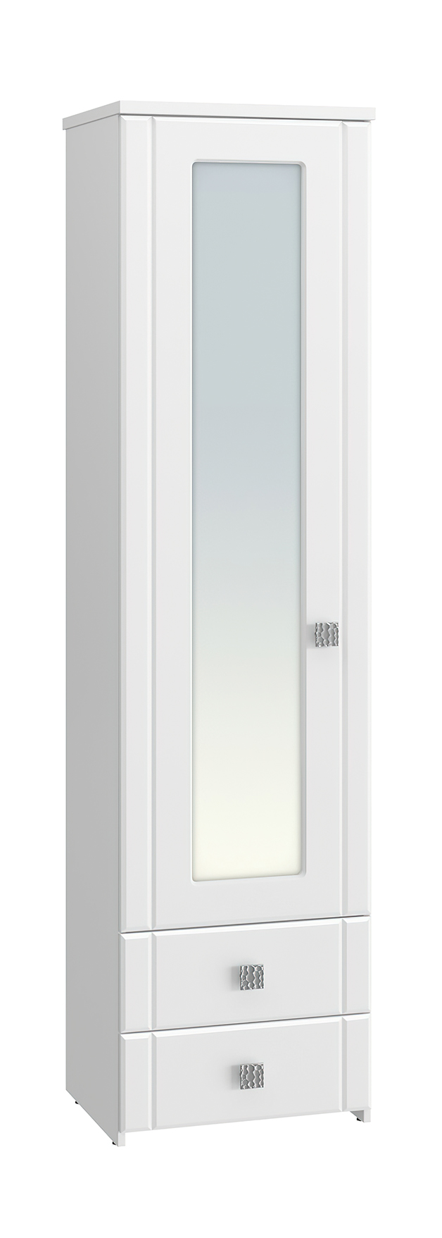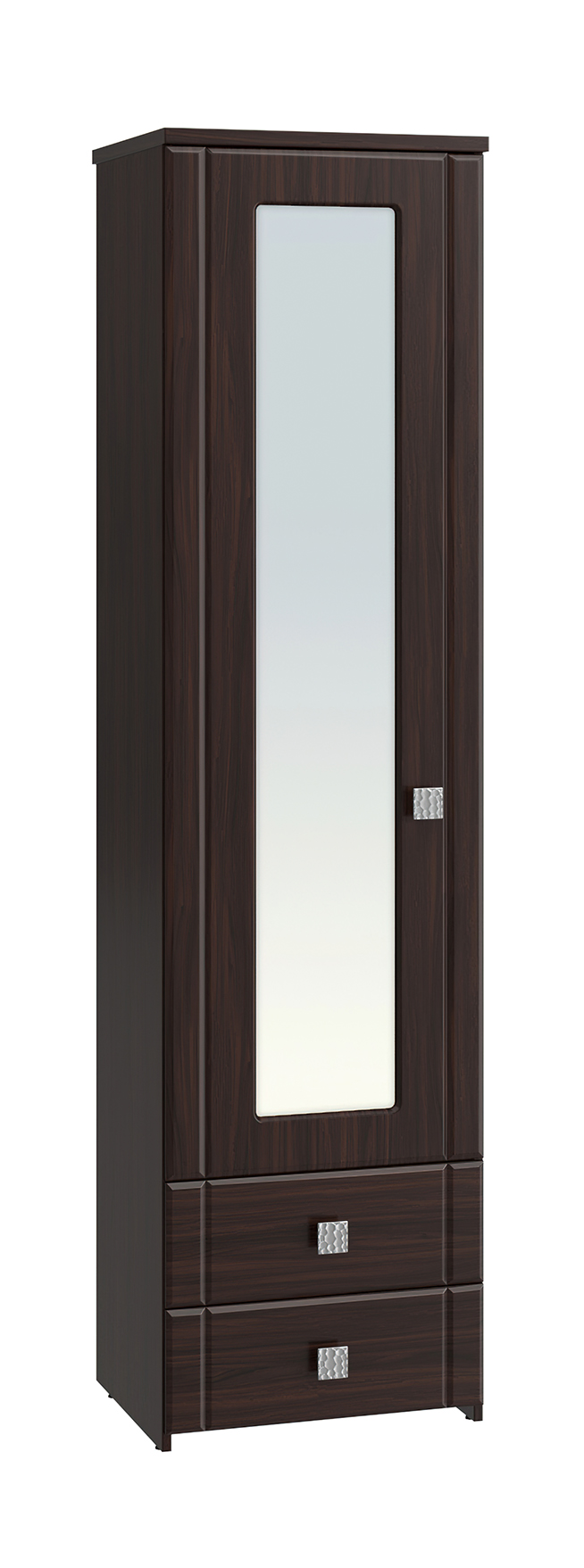Шкаф-пенал с зеркалом Изабель ИЗ-63К предназначен для белья или книг, оснащен для вашего удобства четырьмя полками и двумя выдвижными ящиками. Модуль может быть собран "левым" или "правым". Крышка выполнена из ЛДСП 25 мм, дно ящиков двп 3 мм. Фурнитура: металлизированные квадратные ручки, петли с доводчиками, телескопические направляющие полного выдвижения без доводчиков.