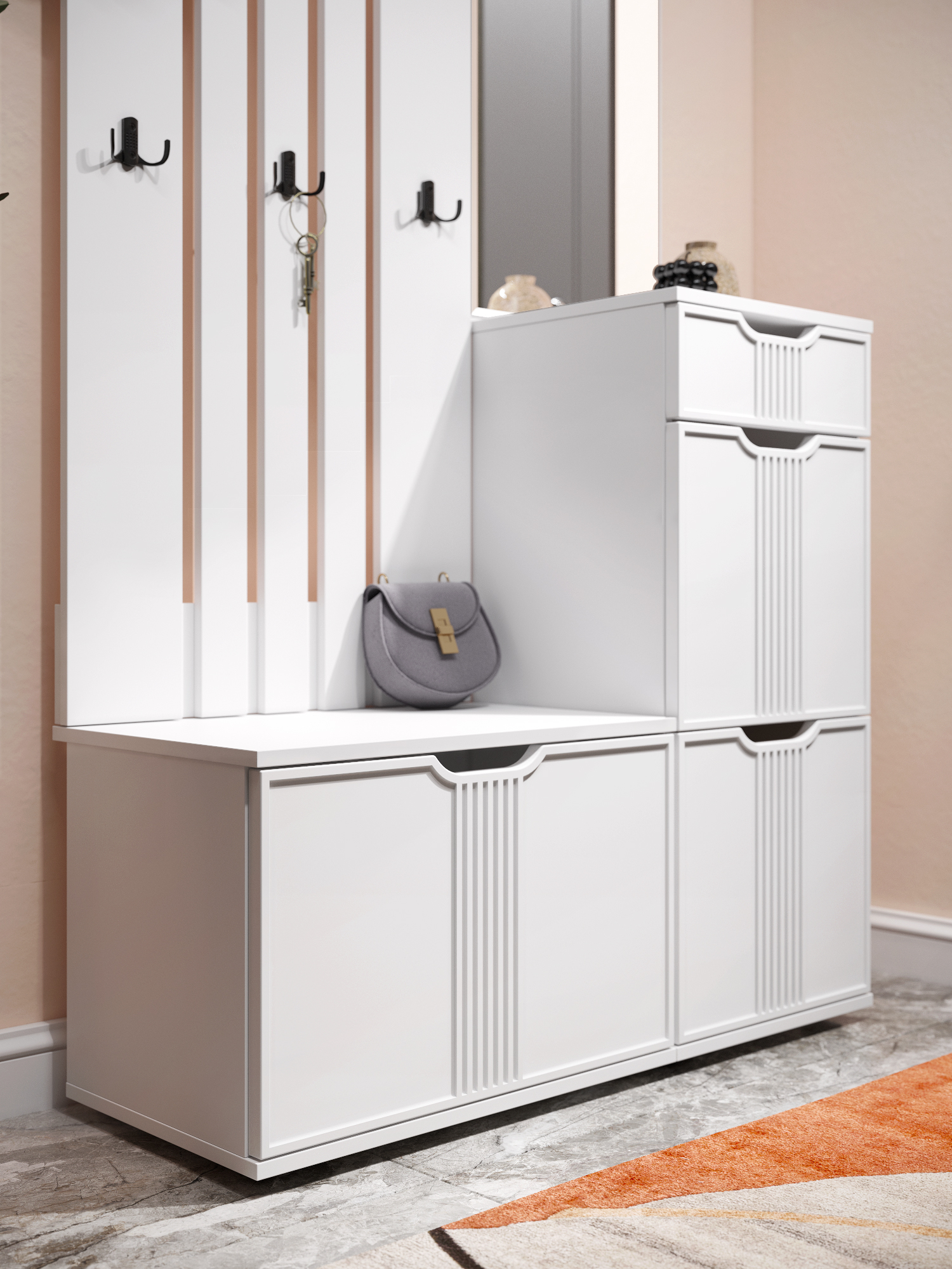 Тумба Эмилия ЭЛ-4K (с подушкой) прекрасно подойдет для хранения обуви и других вещей. Сочетая тумбу с другими модулями из коллекции Эмилия, Вы можете создать стильную и лаконичную прихожую у себя дома. Свес крышки в 30 мм обеспечит прилегание к стене с любым плинтусом. Высота опоры 20 мм. Размер подушки 600х368 мм. Ткань мягкой части велюр, наполнение: поролон 40 мм, синтепон, белый флизелин.